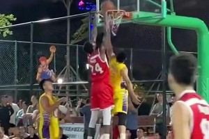这就是为什么打篮球要有身高,不然跳得一样高,还是会被人隔扣!